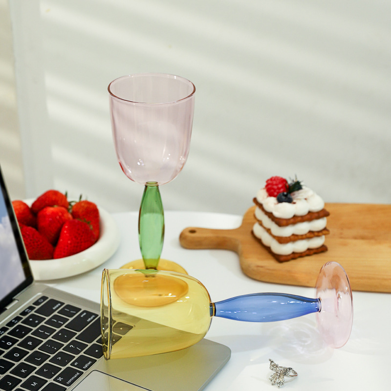 Creative Instagram-worthy color-blocked glass cups and colorful water bottles: